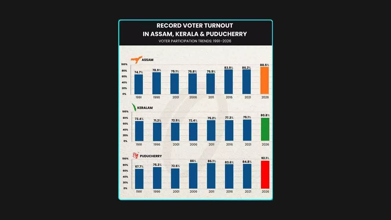 Voting for the Assembly elections in Kerala, Assam and Puducherry concluded smoothly under heightened security, with the fate of candidates now sealed in EVMs. While political parties must wait until May 4 for the verdict, early ground assessments suggest that the high voter turnout—about 86 per cent in Assam, 79 per cent in Kerala and an impressive 90 per cent in Puducherry—may hold crucial clues. Initial indications point to an advantage for the BJP in Assam and Puducherry, while the UDF appears to have an edge in Kerala.
