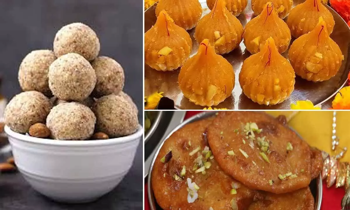 Give tradition a twist with this fusion of roasted besan and Bourbon biscuits. Start by gently roasting besan in a pan until it turns golden and releases a nutty aroma. Stir in ghee and cook briefly before folding in crushed Bourbon biscuits, sugar, chopped nuts, cardamom, and saffron. Slowly pour in milk, stirring until the mixture thickens and begins to leave the sides of the pan. While still warm, press the dough into greased modak moulds, shape neatly, and steam for 10–12 minutes. Let them cool, garnish with pistachios, and serve as a festival treat that layers chocolate, nuttiness, and nostalgia in every bite.